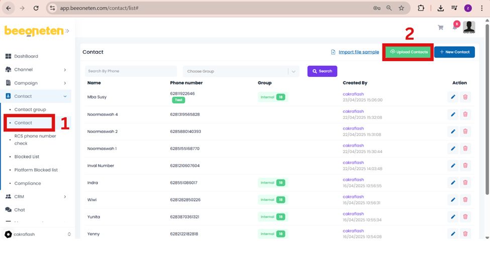 Upload Multiple Contacts Open Contact => Contact Click on Import contact Check sample for importing file: contact_import_sample_full.xlsx Select contact file Select the group you want to import contacts into Click Import Doc navigation← Contact GroupUpload Single Contact → Share This Article: How can we help Name Email Subject Message