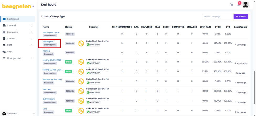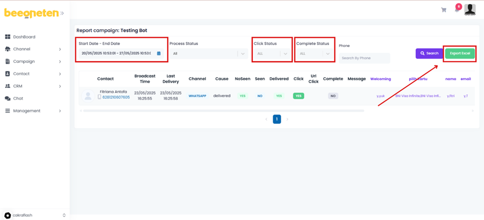 This feature allows users to download the data of each bulk campaign as an excel file (.xlsx).