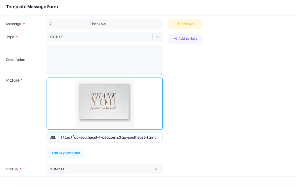 - For texts that are too long, it is best to prepare a pdf or word file and then convert the type of message into a File that customers can download and read