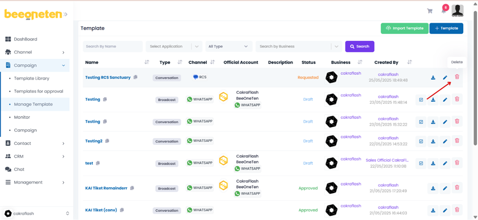 9. Delete Template