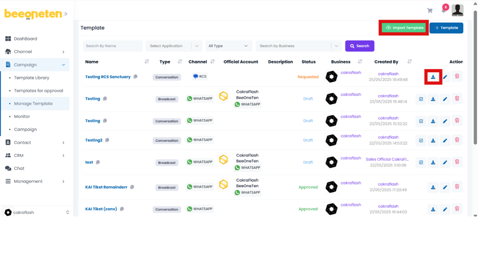 Note: Templates when exported as a file will have the extension as Beeoneten [Example: templatesample.beeoneten]. Only files have extension as Beeoneten can be imported into the Template section.