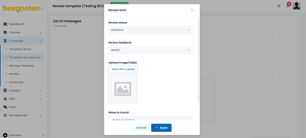 If you are the system admin, and you are responsible for approving the template, then when you receive a notification that a user/company has sent a template for approval, you must: