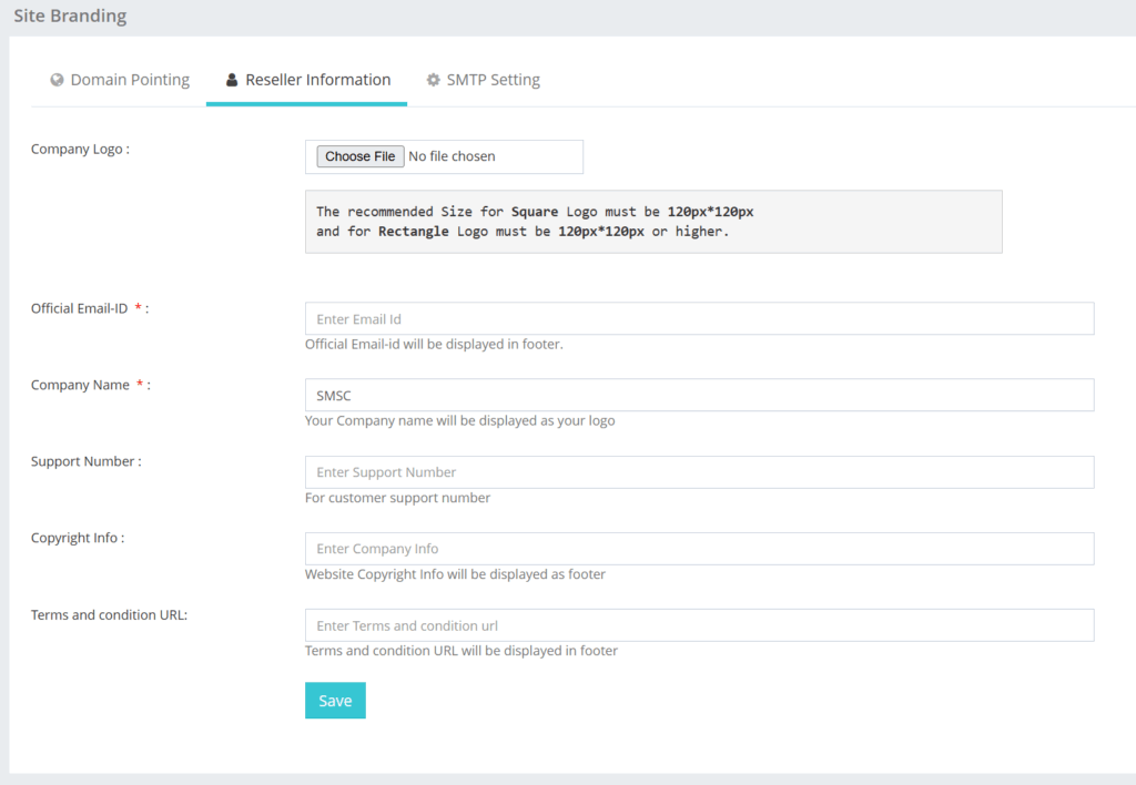 Reseller Information Reseller can add logo emal, company name, etc on this page Doc navigation← Domain PointingSMTP Setting → Share This Article: How can we help Name Email Subject Message