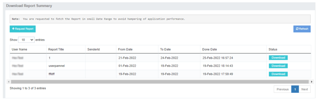 All requested reports are visible under the Download Report tab, providing users with easy access to previously generated reports.